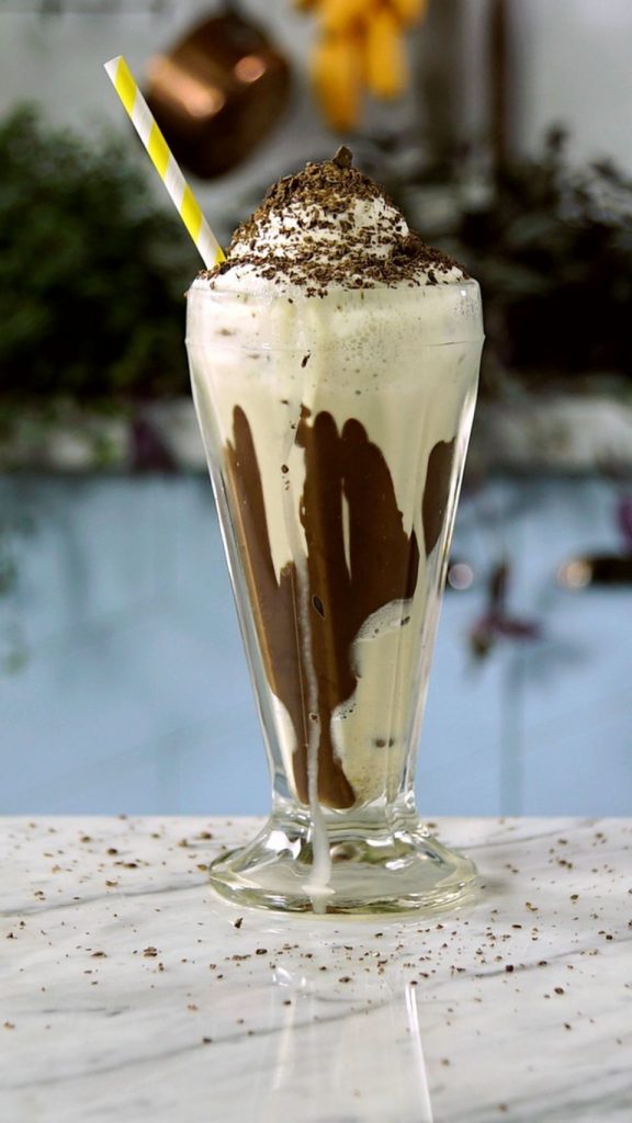 INGREDIENTES 5 bolas de sorvete de ninho trufado saborela 3 xícaras de gelo 3 colheres de chocolate em pó MODO DE PREPARO: Bata tudo no mixer e depois decore com calda de chocolate ou de caramelo.
